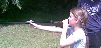 Voor onze kleinere gasten pakken we eerder de blaaspijp dan de handboog. Zelf pijltjes draaien is niet nodig. Met steel-darts wordt op de blazoenen geschoten.